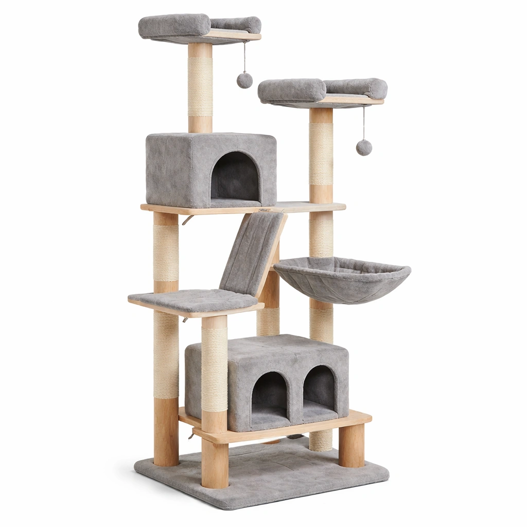 Árbol para gatos de madera y terciopelo