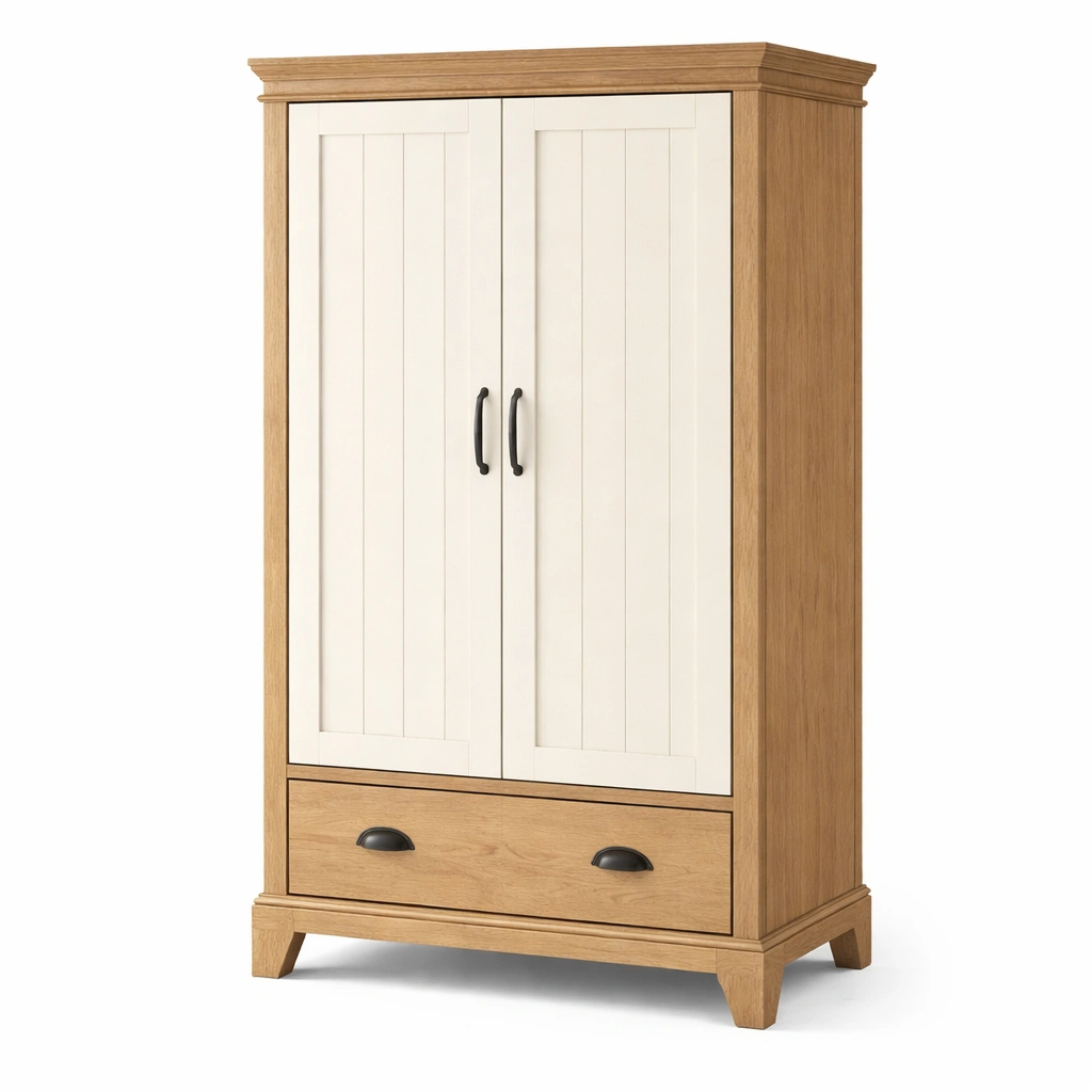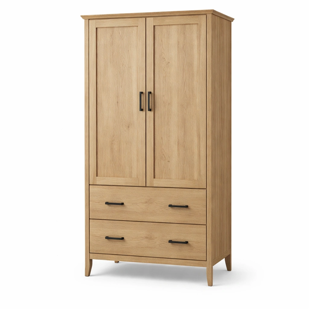 Armario de madera de roble y MDF con dos puertas y cajón 100x200x50 cm