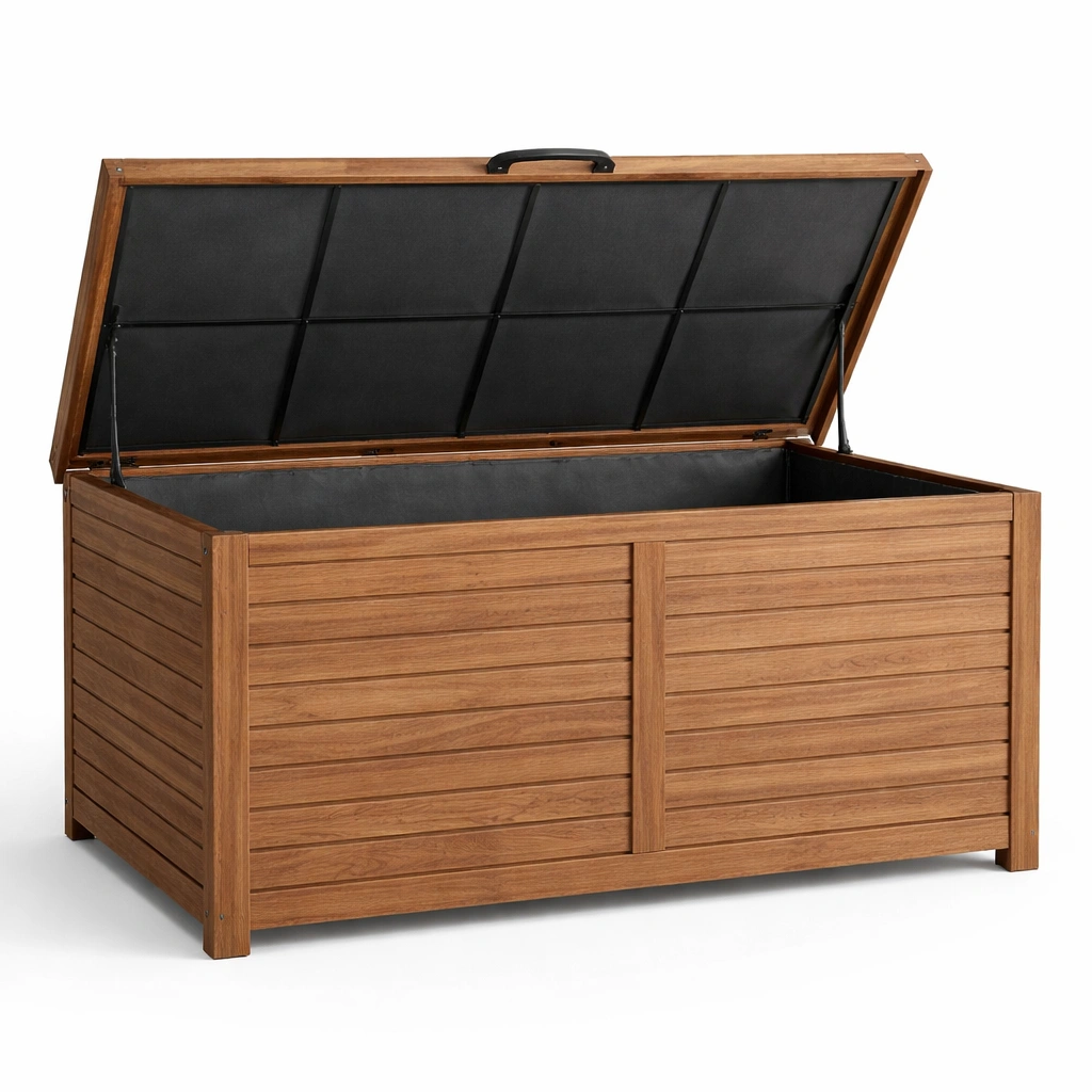 Materiales: Estructura de madera de acacia, interior forrado con lona de poliéster impermeable.
