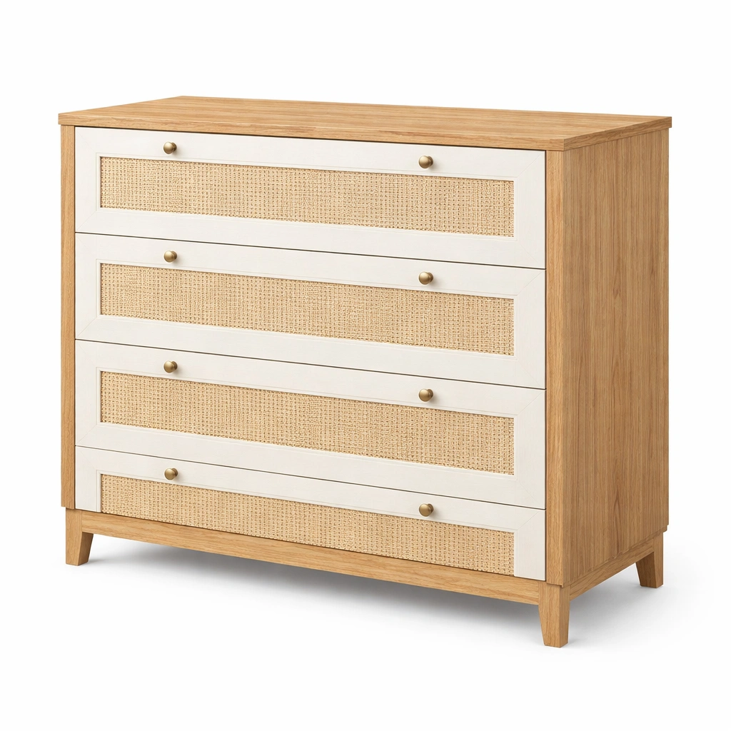 Cajonera de madera y ratán natural con 4 cajones 80x90x40 cm